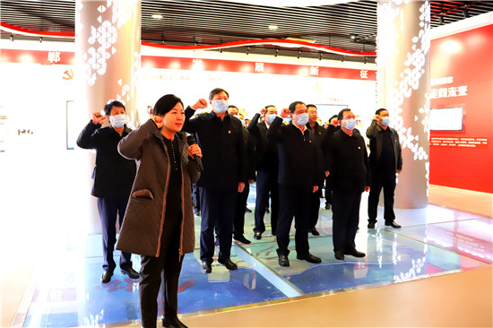 2月18日,新年上班第一天,市人大常委會副主任、鄲城縣委書記羅文閣,縣委副書記、縣長李全林帶領縣四個班子領導和部分縣直單位黨員干部,開展中共黨史學習教育活動,激勵全縣各級黨員干部不忘初心、牢記使命,在新時代不斷加強黨的建設,更加緊密地團結在以習近平同志為核心的黨中央周圍,始終保持永不懈怠的精神狀態(tài)和一往無前的奮斗姿態(tài),振奮精神,堅定信心,銳意進取,真抓實干,奮力譜寫全面建設社會主義現代化鄲城新篇章,以優(yōu)異成績迎接建黨100周年。