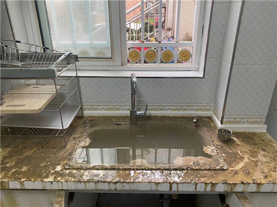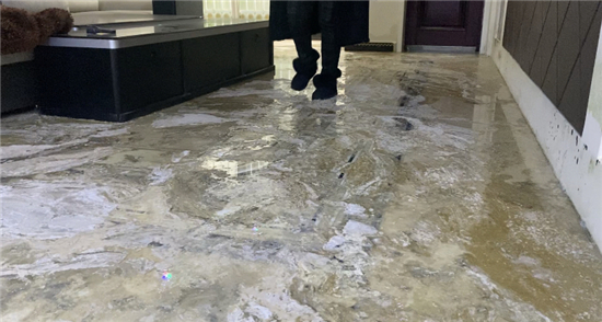 看著精心裝修的房子,被下水道的污水浸泡了每個角落,新買的家具被泡,墻體被污水肆意的畫成“涂鴉”。看到尚未入住的新房這般“慘烈”模樣,石女士氣不打一處來?!罢l能想到下水道里的污水能從洗碗池里溢出來啊,污水隨著地板的縫隙滲入了地板下面,前3次出現(xiàn)這種情況后,屋里已經(jīng)不成樣子,為了孩子結(jié)婚,這又重新裝修了一邊,家具也是剛換的,又被污水浸泡了,這都是第4次了,每次的損失都是我自己承擔(dān)的?!笔繗鈶嵉卣f。