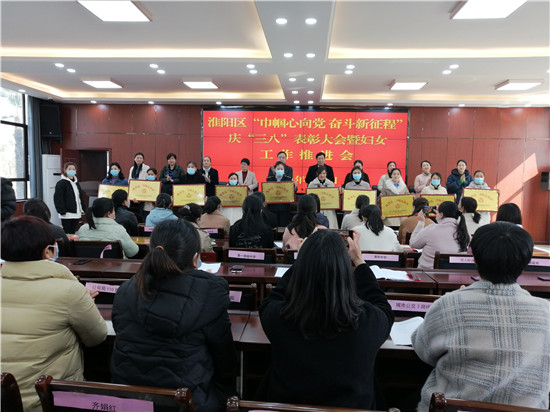 副區(qū)長朱希炎宣讀了《關(guān)于表彰2020年度淮陽區(qū)“三八”紅旗集體、“三八”紅旗手等先進集體和個人的決定》,抗疫巾幗先進個人韓曉杰、農(nóng)村致富女能手黃寶娟作了典型發(fā)言。