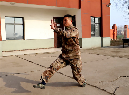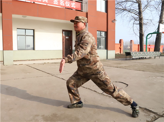 “立正!向右看齊!”3月4日,在鄲城縣民兵訓(xùn)練基地,2021年春季征兵預(yù)定新兵訓(xùn)練場(chǎng)上,53歲的訓(xùn)練班長王成華從骨子里喊出這句口號(hào)、集結(jié)準(zhǔn)新兵隊(duì)伍。從1992年“鐵軍”127師退伍進(jìn)入人武部至今,這句口號(hào)他已經(jīng)喊了29年,始終底氣十足。同事和準(zhǔn)新兵們尊稱他為“班長王”。