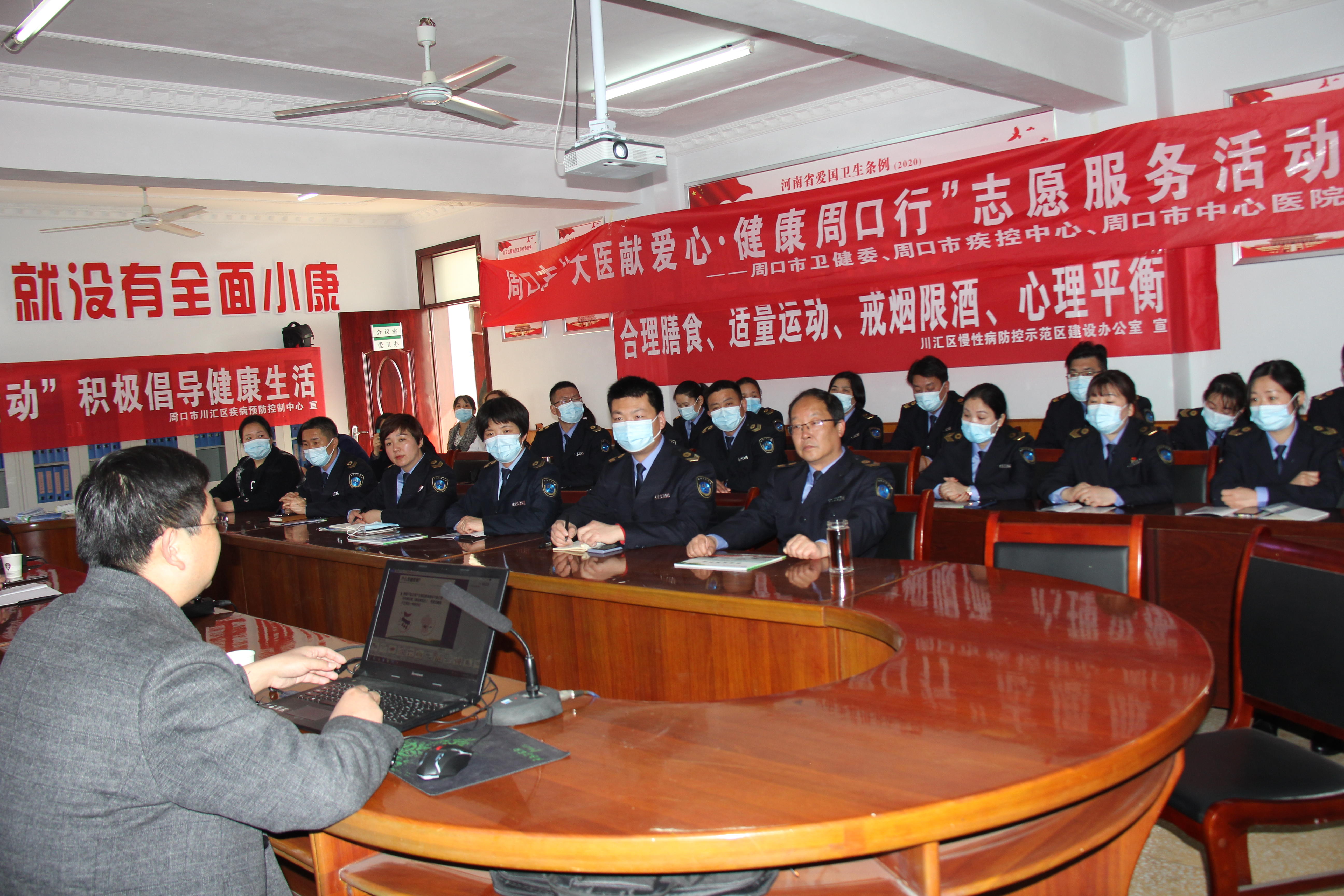 為深入開展“河南省新時代文明實踐推動周”活動,3月4日下午,由川匯區(qū)衛(wèi)健委組織,市健康教育所、市中心醫(yī)院、區(qū)健康教育所、區(qū)疾病預(yù)防控制中心、區(qū)慢性病防控示范區(qū)建設(shè)辦公室、人和社區(qū)衛(wèi)生服務(wù)中心等單位承辦的“新時代文明實踐推動周”“健康周口行 大醫(yī)獻愛心”健康科普活動走進川匯區(qū)衛(wèi)生計生監(jiān)督所。講座邀請周口市中心醫(yī)院內(nèi)分泌專家楊東輝為川匯區(qū)衛(wèi)生計生監(jiān)督所干部職工送上“糖尿病如何科學(xué)防治”健康科普知識講座。