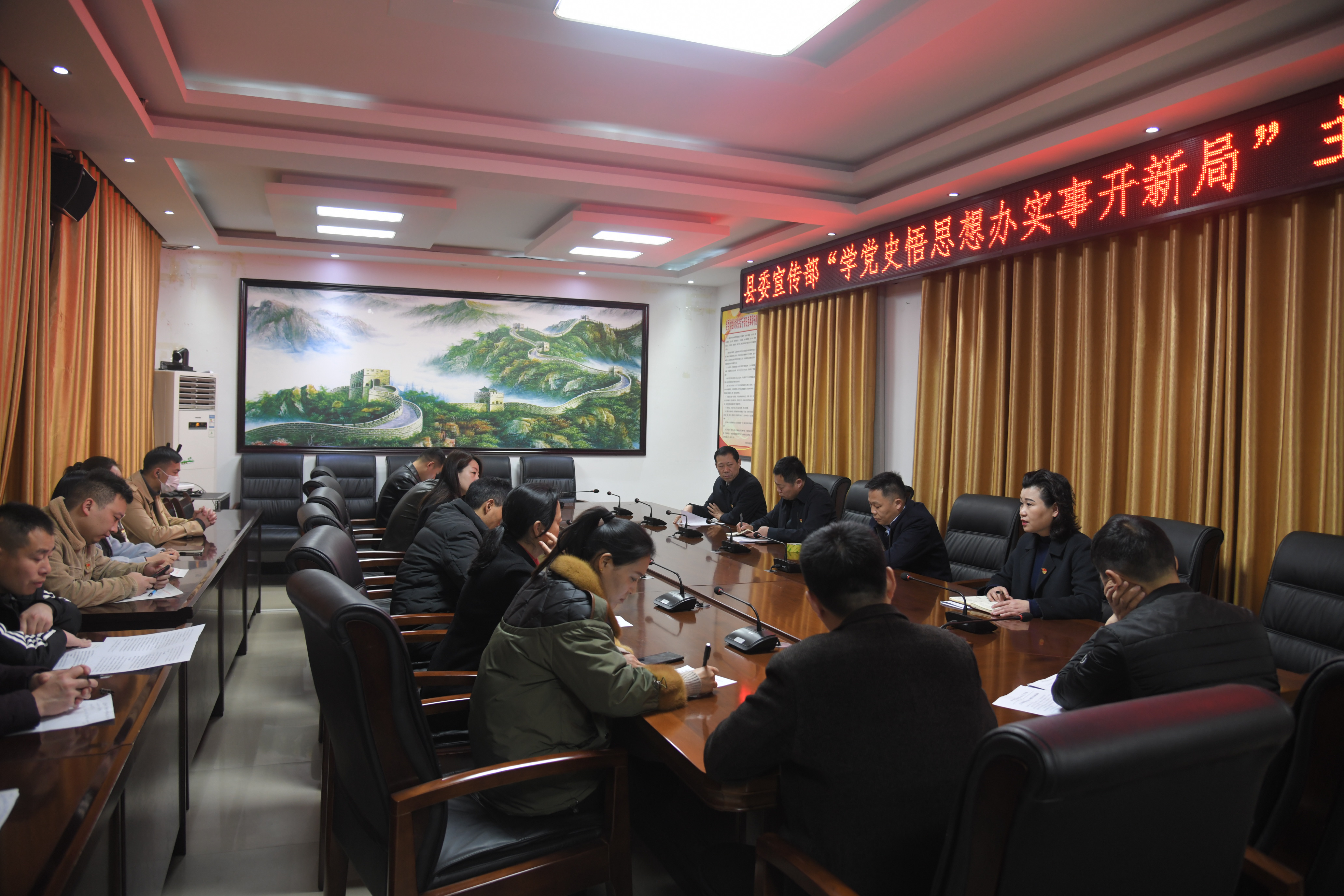 會上,梁燕對宣傳部黨員干部廉政建設(shè)工作提出具體要求,希望大家自覺地嚴以律己,保持政治上清醒、經(jīng)濟上清楚,主動接受監(jiān)督。鄭春來就近期宣傳部黨員干部思想教育、財務(wù)紀律、學(xué)習(xí)宣傳等工作進行安排,要求大家通過學(xué)黨史、悟思想、辦實事、開新局,力爭全縣宣傳思想工作取得更大成績,再上一個新臺階。