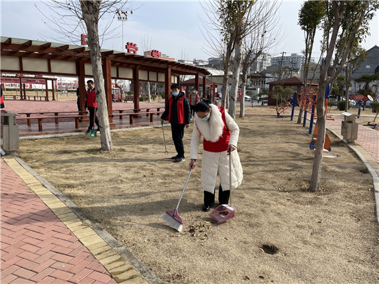 活動中,辦事處志愿者拿著垃圾袋、掃帚等工具按照區(qū)域分工積極行動,他們發(fā)揚不怕苦、不怕臟的精神,對游園內(nèi)的落葉、雜草、垃圾等進(jìn)行全面清理打掃,經(jīng)過大家辛苦勞動,復(fù)興街游園衛(wèi)生煥然一新,得到了居民的贊揚。