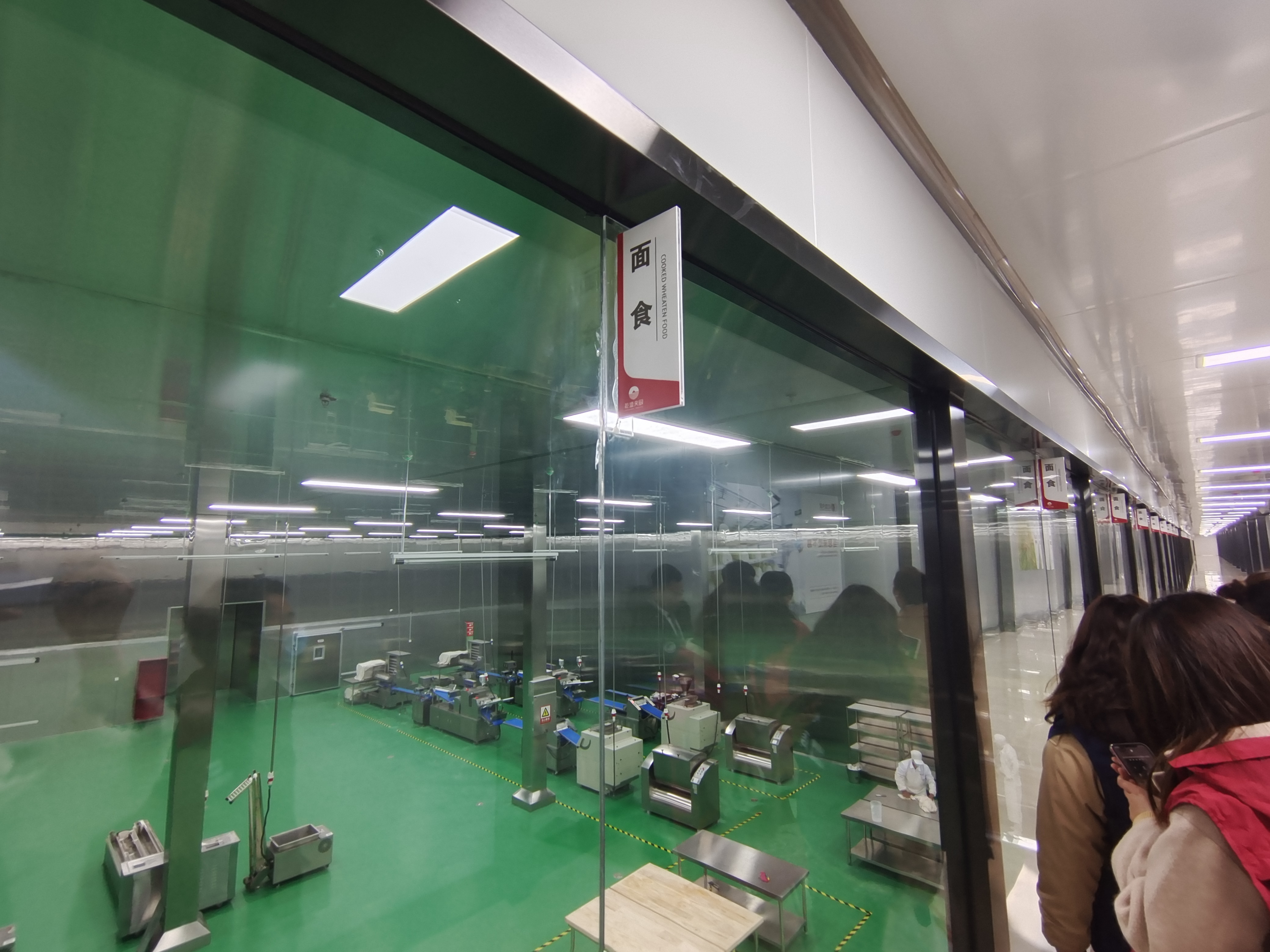 在位于川匯區(qū)女媧路88號的乾盛央廚,直播團隊用圖文形式實時現(xiàn)場呈現(xiàn)午餐制作整體環(huán)境。隔著參觀走廊上的玻璃,全線開機一小時能出12000個無添加饅頭的面食車間,從生米到熟飯全自動機械化制作的米飯車間,全程紫外線消毒、菜品全清真的烹飪車間,流水線上分盒分箱并與物流區(qū)無縫銜接的分餐生產(chǎn)線,這些在主播與乾盛央廚工作人員的一問一答中呈現(xiàn)在觀看直播的家長朋友們面前。“我們不僅做飯,餐具也由我們提供,餐具是PPP材料,耐高溫,安全無毒,筷子、勺子是不銹鋼的?!惫ぷ魅藛T介紹。