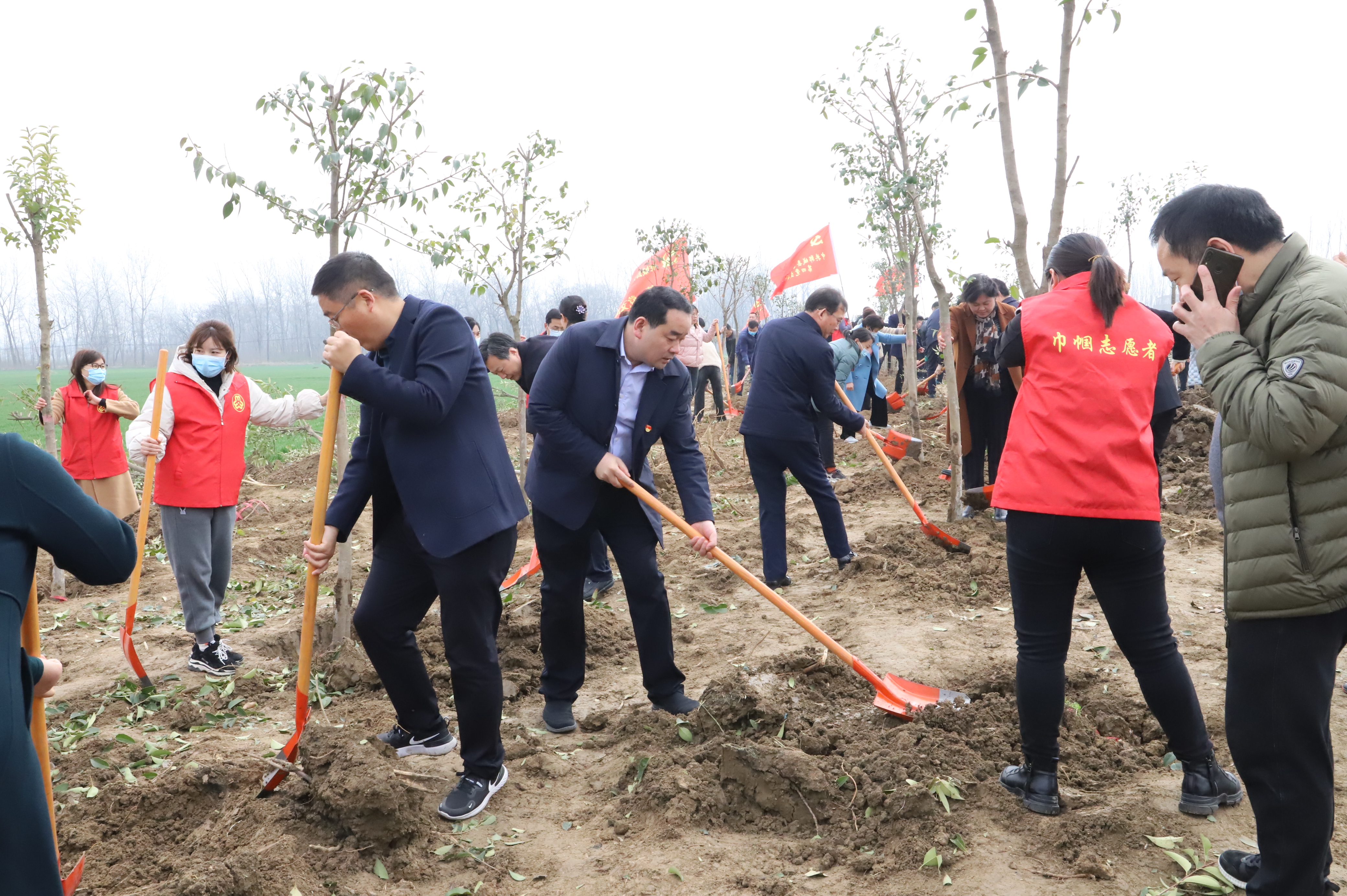 草長鶯飛,春回大地。3月12日,在第43個(gè)植樹節(jié)之際,全市掀起義務(wù)植樹熱潮,黨員干部、志愿者、市民踴躍參與義務(wù)植樹活動(dòng)。扶正樹苗、揮鍬培土、分層踩實(shí)、堆起圍堰、提水澆灌,認(rèn)真地完成著每一道工序,栽下了一棵棵樹苗,為改善生態(tài)環(huán)境、綠化美麗家園種下了一棵棵綠色的希望。圖為鄲城縣義務(wù)植樹現(xiàn)場(chǎng)。