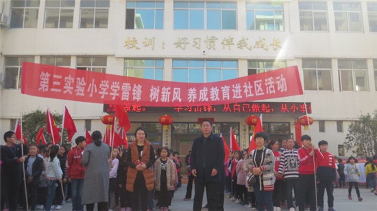 第三實驗小學開展“學雷鋒”進社區(qū)活動,讓孩子親身體驗如何處理垃圾、愛護花草的活動。使雷鋒精神深入到每個班級,激發(fā)學生養(yǎng)成好習慣意識。讓小學生在行為上倡導學雷鋒精神,使雷鋒精神得以代代相傳和弘揚。