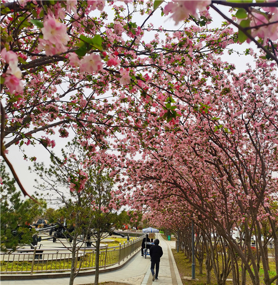 日前,周口公園里的海棠紛紛綻放。在公園內的道路上,海棠已進入盛花期,粉色的花朵如夢似幻,令人沉醉。