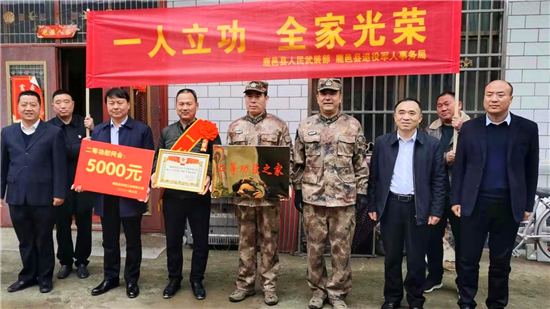 一人立功,全家光榮。3月19日上午,鹿邑縣試量鎮(zhèn)后楊樓行政村鑼鼓喧天,熱鬧非凡,鹿邑縣人武部、縣退役軍人事務(wù)局及試量鎮(zhèn)相關(guān)負(fù)責(zé)人一行,將立功喜報送到了二等功臣張國富的家人手中。