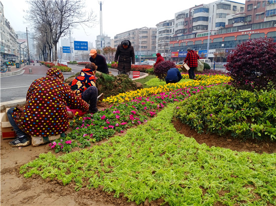 一場春雨過后,處處洋溢著勃勃生機(jī)。3月20日上午,記者在周口中心城區(qū)大慶路與交通大道交叉口處的紅綠燈旁看到,園藝工作人員正在忙碌著補(bǔ)種花木,黃色、綠色、紅色的花兒平鋪在一起組合成一道亮麗的風(fēng)景,扮靚了街頭,令人賞心悅目。③2