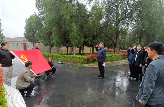 在五七干校舊址,大家通過(guò)觀看館內(nèi)大量留存的圖片、文字、實(shí)物等珍貴資料,再現(xiàn)了老一輩黨員干部在困境中堅(jiān)持服務(wù)基層、服務(wù)百姓的感人場(chǎng)景,受到了一次鮮活的革命傳統(tǒng)教育和精神洗禮。紛紛為“五七”干校干部職工身處逆境樂(lè)觀向上、艱苦奮斗的精神點(diǎn)贊。隨后,在鮮紅的黨旗下,大家莊嚴(yán)地舉起右拳,重溫了入黨誓詞。