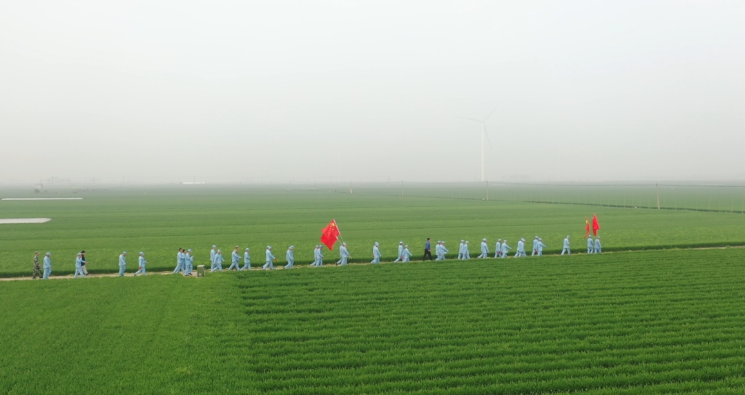 大家換上紅軍服裝,分為四個列隊進行整備,在拓展教官的帶領下,信心滿滿地走上新時代鄉(xiāng)村振興的“長征路”。