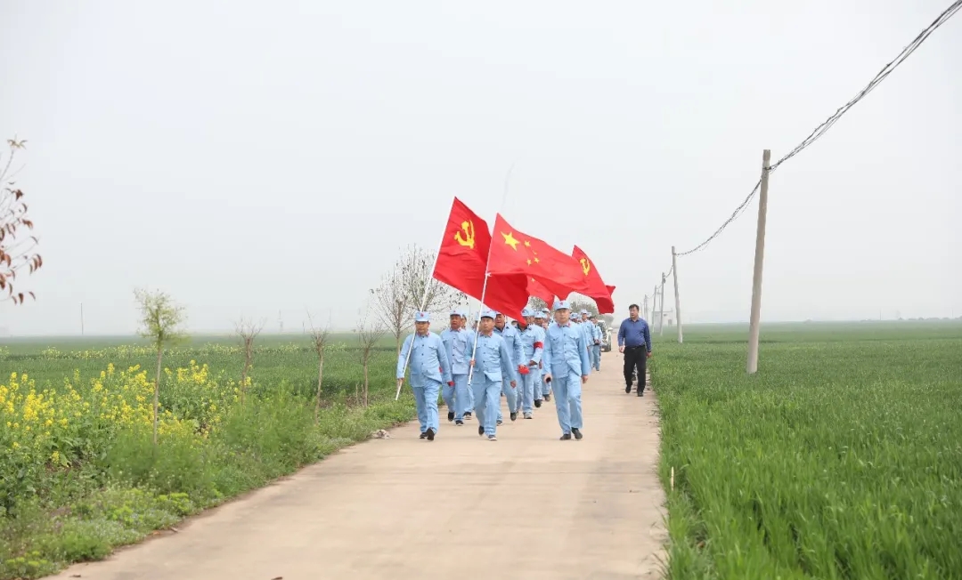 “我一定要跟著大部隊走,絕不掉隊,不給紅軍前輩抹黑?!眲倓傋鐾晔中g的七一村黨支部書記何治安斬釘截鐵地說。在七二村,熱情好客的七里倉群眾不僅給“大軍”送來了西紅柿、黃瓜、茶雞蛋、香蕉等補給品,還表演了“祖國你好”、“美麗生活”等扇子舞,再現(xiàn)了當年紅軍到哪都受人民群眾擁戴的情景,同志們的疲憊一下子煙消霧散.....按照拓展行程安排,在盆李村的“周口市第一個農村黨支部舊址”,同志們進行了參觀瞻仰和重溫入黨誓詞等活動,回顧了歷史,緬懷了先烈,震撼了心靈,錘煉了黨性。