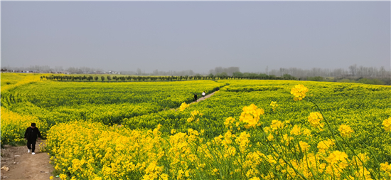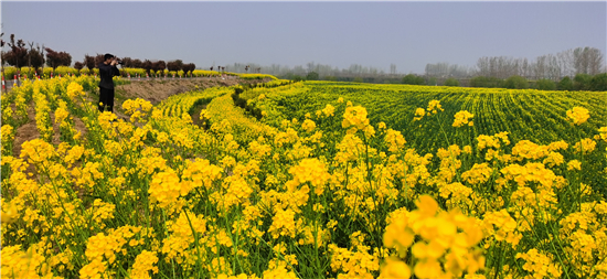 3月29日,商水縣鄧城鎮(zhèn)油菜花花開正盛。商水縣鄧城鎮(zhèn)沿沙河種植4000多畝黃色、粉色等多色油菜花,為沙河沿岸風光增加了色彩,吸引了不少附近縣市群眾賞花游玩,同時也帶動了養(yǎng)蜂、榨油等相關產業(yè)。