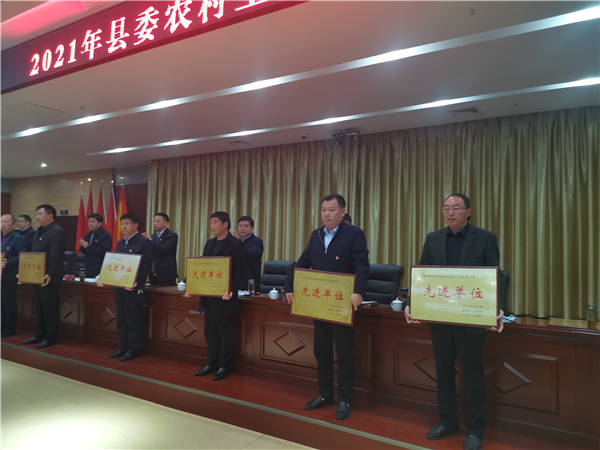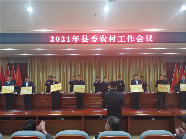 郭俊濤就貫徹落實會議精神及下一步農村工作進行具體安排部署??h委副書記許四軍宣讀了縣委、縣政府關于表揚2020年度農業(yè)農村工作先進單位、先進個人的通報。會議還對受表彰的先進單位代表進行了頒獎。