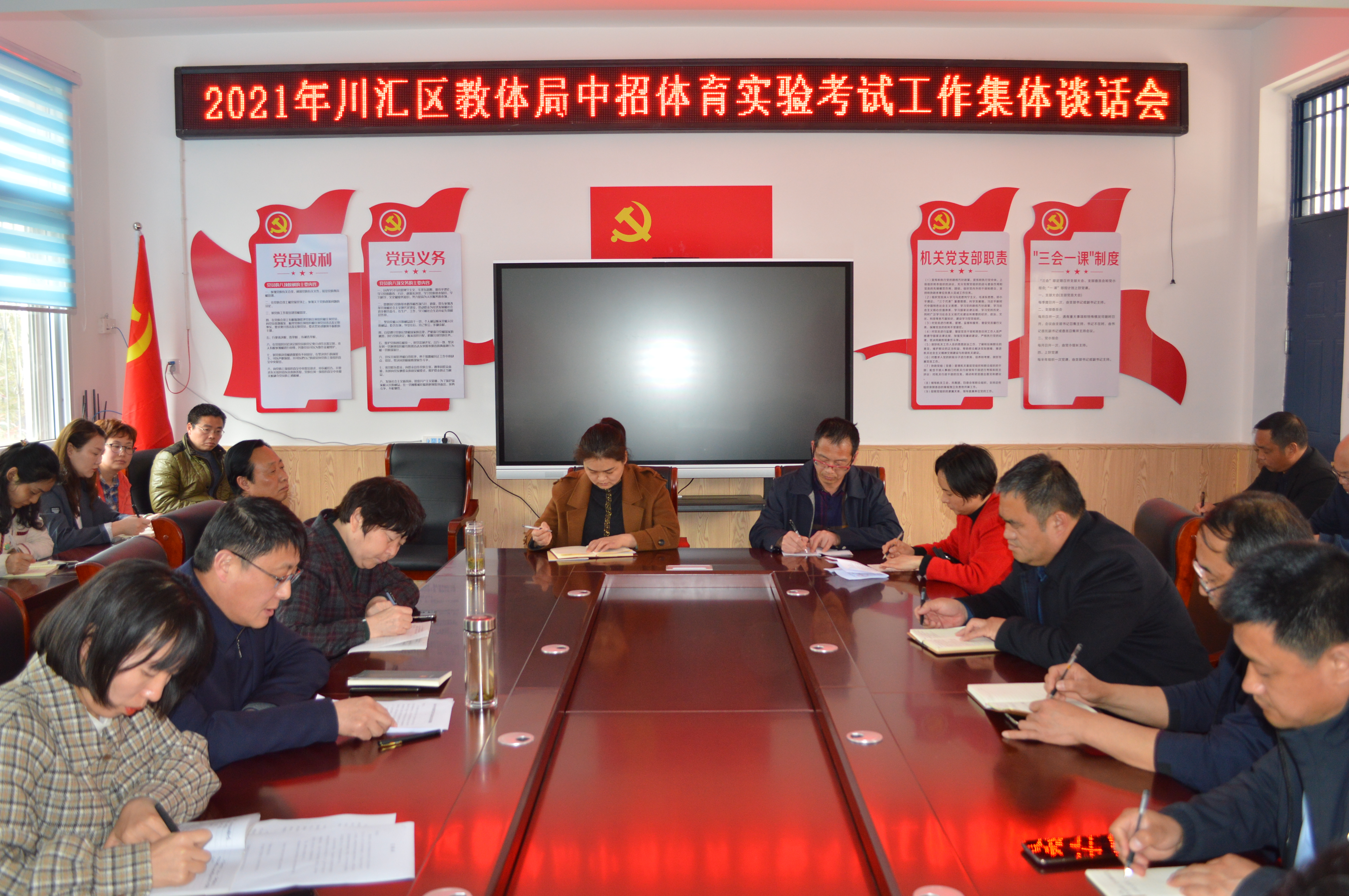 4月9日下午,川匯區(qū)教育體育局召開中招體育實驗考試集體談話會。派駐區(qū)教體局紀(jì)檢組組長許攀主持會議,區(qū)教體局黨組書記、局長徐德志進行黨風(fēng)廉政談話,區(qū)教體局分管領(lǐng)導(dǎo)、考試負(fù)責(zé)人及考務(wù)人員、各中學(xué)校長參加會議。