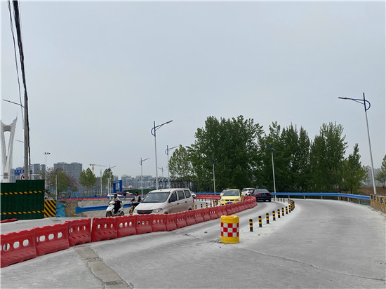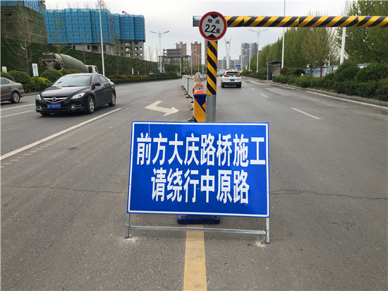 在大慶路橋南、北兩個(gè)上橋口,已安裝了高為2.2米的限高桿,施工路段的東側(cè)修有4個(gè)車道的便道,各車道中間設(shè)有臨時(shí)護(hù)欄,低于2.2米的車輛可以通行。值得提醒的是,該路段早、晚高峰期時(shí)較為擁堵,希望市民提前繞行(可繞行至中原路、八一大道)。