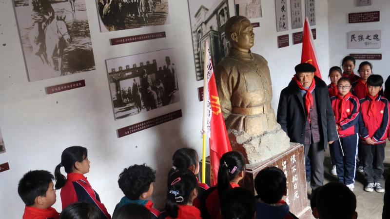 在全國上下掀起黨史學(xué)習(xí)教育熱潮之際,近日,來自吉鴻昌小學(xué)六(1)班的30名孩子,在學(xué)校少先隊輔導(dǎo)員的帶領(lǐng)下來到呂潭學(xué)校舊址,開展主題為“弘揚(yáng)鴻昌精神、傳承紅色基因”的主題隊會活動,參觀了吉鴻昌學(xué)校和吉鴻昌故居,循著英雄的足跡,親身感受吉鴻昌精神的內(nèi)涵,接受一場紅色的精神洗禮。期間,在吉鴻昌將軍塑像前,何國志老人生動地講解了吉鴻昌將軍親手?jǐn)捞弥丁?chuàng)辦吉鴻昌學(xué)校、首次向中國人介紹電視等身前事跡,在場的孩子感動得熱淚盈眶。 “聽了何爺爺?shù)闹v述,我被吉鴻昌將軍的事跡深深感動,長大后也要成為一名像他一樣的人!”張晨曦同學(xué)說。