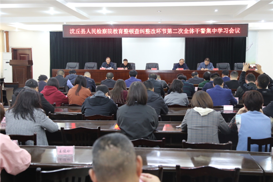 為扎實(shí)做好檢察隊(duì)伍教育整頓查糾整改環(huán)節(jié)工作持續(xù)開展,深入細(xì)致做好思想發(fā)動和政策落實(shí),4月19日,沈丘縣檢察院開展隊(duì)伍教育整頓查糾整改環(huán)節(jié)第二次集中學(xué)習(xí)會議。院黨組成員、政治部主任胡新建主持會議。全體干警參加會議。