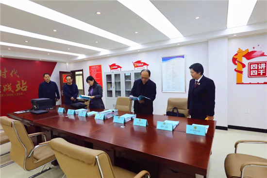 4月20日下午,河南省政法隊伍教育整頓第十六駐點指導組檢察院專班成員、省檢察院十部二級高級檢察官助理張豫昌,檢察院專班成員、河南檢察職業(yè)學院政治部組織處副處長李敬華,周口市人民檢察院政治部副主任劉建軍一行蒞臨淮陽區(qū)人民檢察院督導查看隊伍教育整頓學習教育環(huán)節(jié)各項任務的完成情況?;搓枀^(qū)人民檢察院黨組書記、檢察長嚴新愛等陪同檢查。