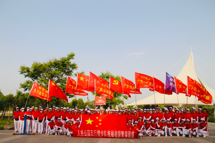 健步隊隊員孫煒說:“春風(fēng)十里游人醉,今天是‘五一’勞動節(jié),天行健步隊在人民公園以健步走的形式慶祝我們勞動人民自己的節(jié)日?!?/p>