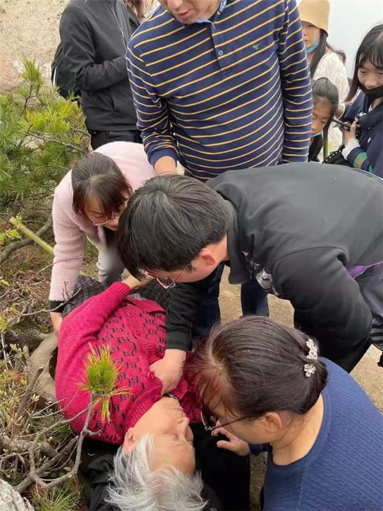 大河網(wǎng)訊 5月3日13點(diǎn)35分左右,周口市兒童醫(yī)院醫(yī)生趙一品在游覽洛陽白云山景區(qū)的途中,遇到一位突發(fā)疾病暈倒的老太太。聽到家屬呼救,趙一品迅速來到暈倒的老太太身邊,協(xié)助家屬清理了老太太口中的食物殘?jiān)尣∪似教傻却仍?/span>