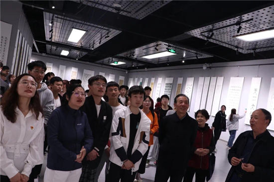 觀看過(guò)程中,離退休工作處理科支部四位老教師為同學(xué)們認(rèn)真講解每幅書(shū)法作品的來(lái)源和深義,將美育與黨史學(xué)習(xí)教育充分結(jié)合,以書(shū)法為媒向在場(chǎng)學(xué)生展開(kāi)愛(ài)國(guó)主義教育、理想信念教育和革命傳統(tǒng)教育。