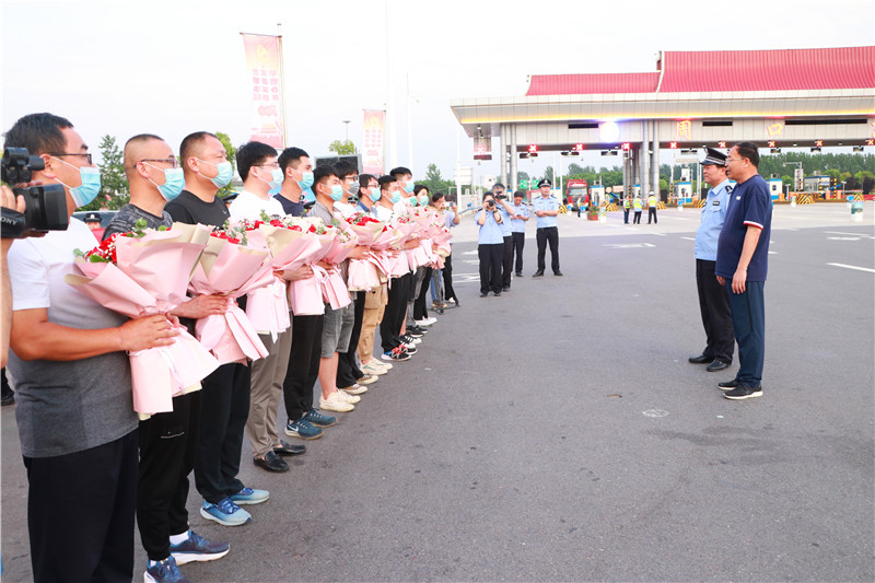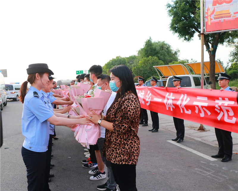 當(dāng)日19時(shí)許,示范區(qū)二級(jí)調(diào)研員丁有亮,示范區(qū)公安分局黨委書(shū)記、局長(zhǎng)何學(xué)民等同志前往迎接,歡迎勝利歸來(lái)的抓捕民警。當(dāng)抓捕組車(chē)輛駛出高速路口時(shí),現(xiàn)場(chǎng)響起熱烈的掌聲。丁有亮、何學(xué)民與參戰(zhàn)民警一一親切握手,對(duì)凱旋的民警表示歡迎和祝賀,民警代表將象征勝利和榮譽(yù)的鮮花獻(xiàn)給抓捕組民警。丁有亮表示向不辱使命、不畏艱險(xiǎn)、勇打勝仗的參戰(zhàn)民警表示慰問(wèn),并要求他們把握戰(zhàn)機(jī),繼續(xù)擴(kuò)大戰(zhàn)果,再接再厲,再立新功。何學(xué)民指出,示范區(qū)公安分局將乘勢(shì)而上、提振士氣,縱深開(kāi)展“迅雷”行動(dòng),出重拳打擊電信詐騙犯罪行為。