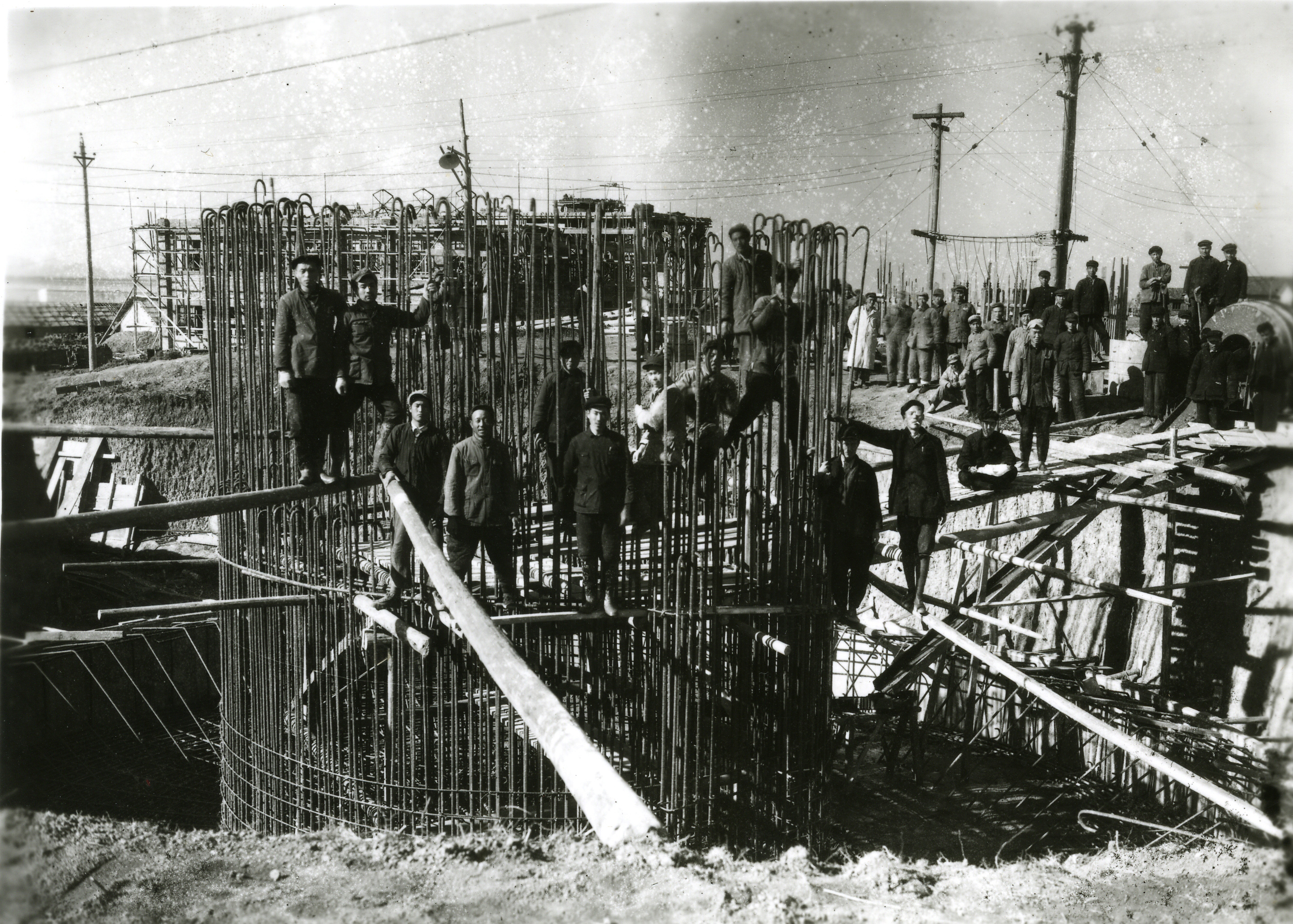 圖1:建國(guó)初期,銅官山礦務(wù)局自備電廠火熱的建設(shè)工地。圖片由銅陵日?qǐng)?bào)社提供