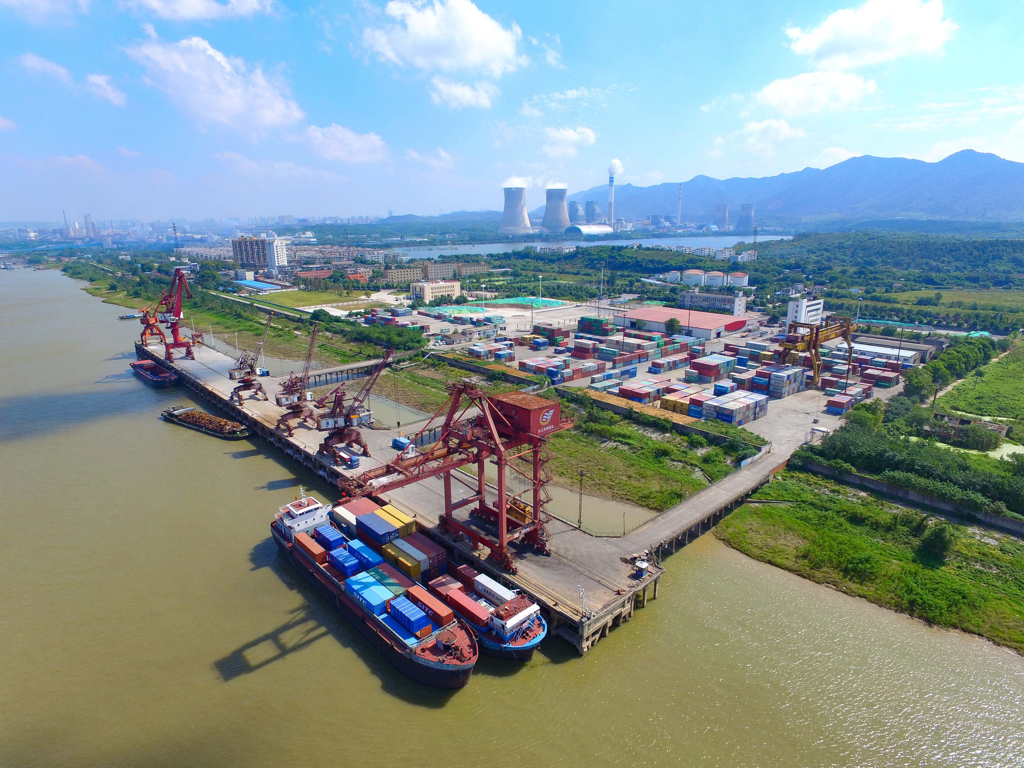 圖3:在安徽銅陵港長(zhǎng)江外貿(mào)碼頭,港口機(jī)械在裝卸集裝箱物資。安徽銅陵是我國(guó)重要的銅工業(yè)基地,銅陵港是長(zhǎng)江萬噸級(jí)輪船終點(diǎn)港。銅陵日?qǐng)?bào)記者 詹俊 攝