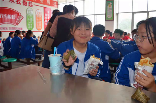 鄲城二實(shí)中師生一起過(guò)端午吃粽子