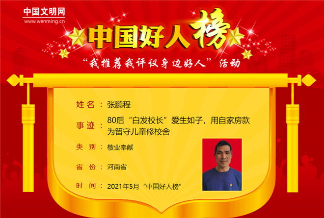 今日起,“網(wǎng)信周口”微信公眾號(hào)將陸續(xù)展示“周口青年好網(wǎng)民”故事,敬請(qǐng)關(guān)注。今天推出第一期《張鵬程:80后白發(fā)“校長(zhǎng)爺爺”,背后故事暖人心》