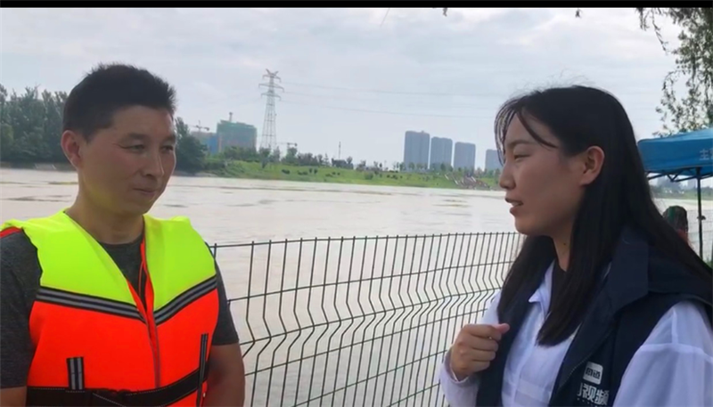 記者王慕晨采訪周口大道橋河段值班人員