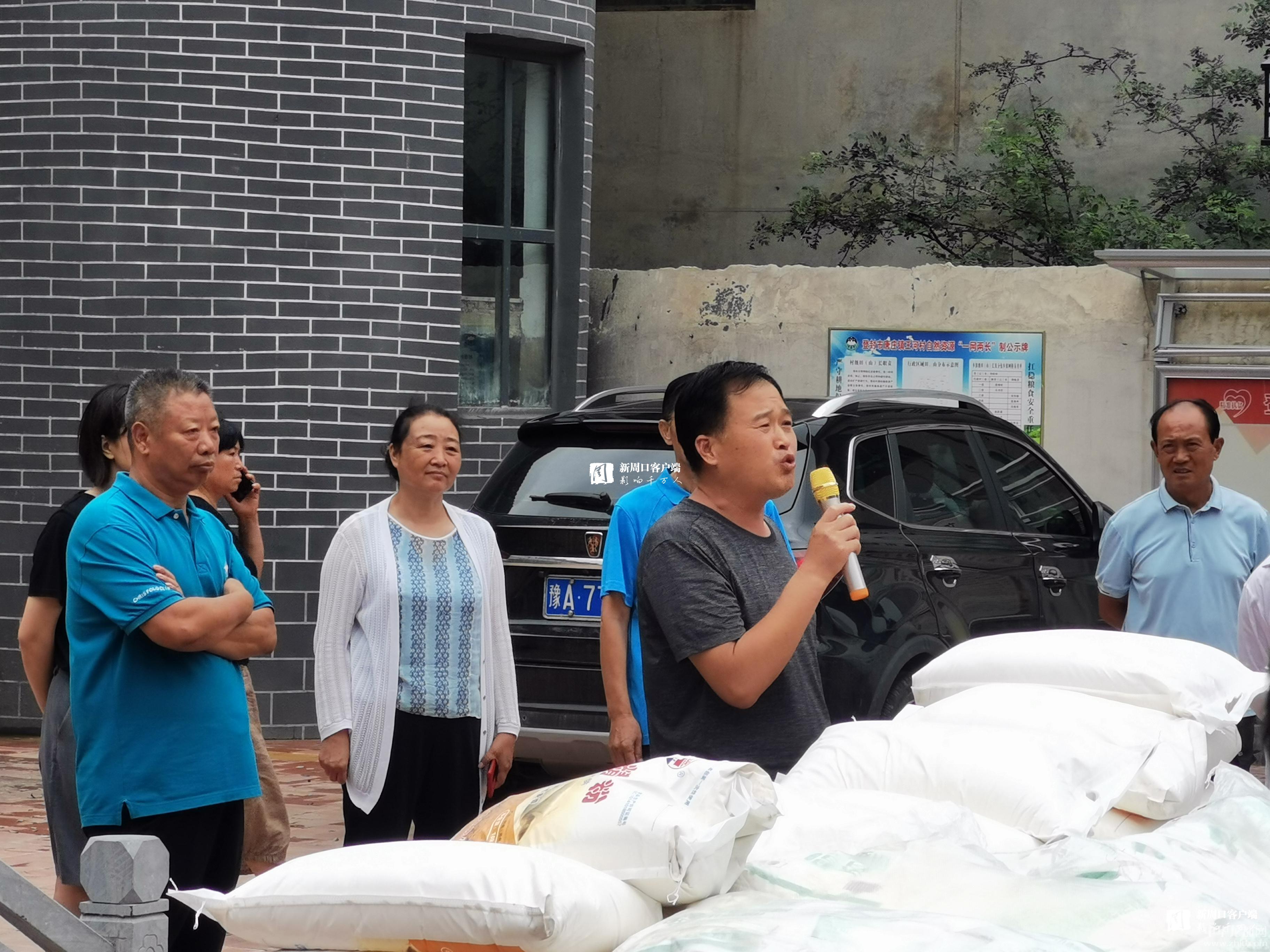此時(shí),登封市唐莊鎮(zhèn)王河村群眾早已在王河村委等候張華的援助。省人大代表、河南科碩農(nóng)業(yè)科技有限公司董事長(zhǎng)張華捐贈(zèng)給王河村民200袋大米、200袋面粉,價(jià)值2萬(wàn)多元。王河村的群眾激動(dòng)地連連感謝:“張總真是菩薩心腸!”