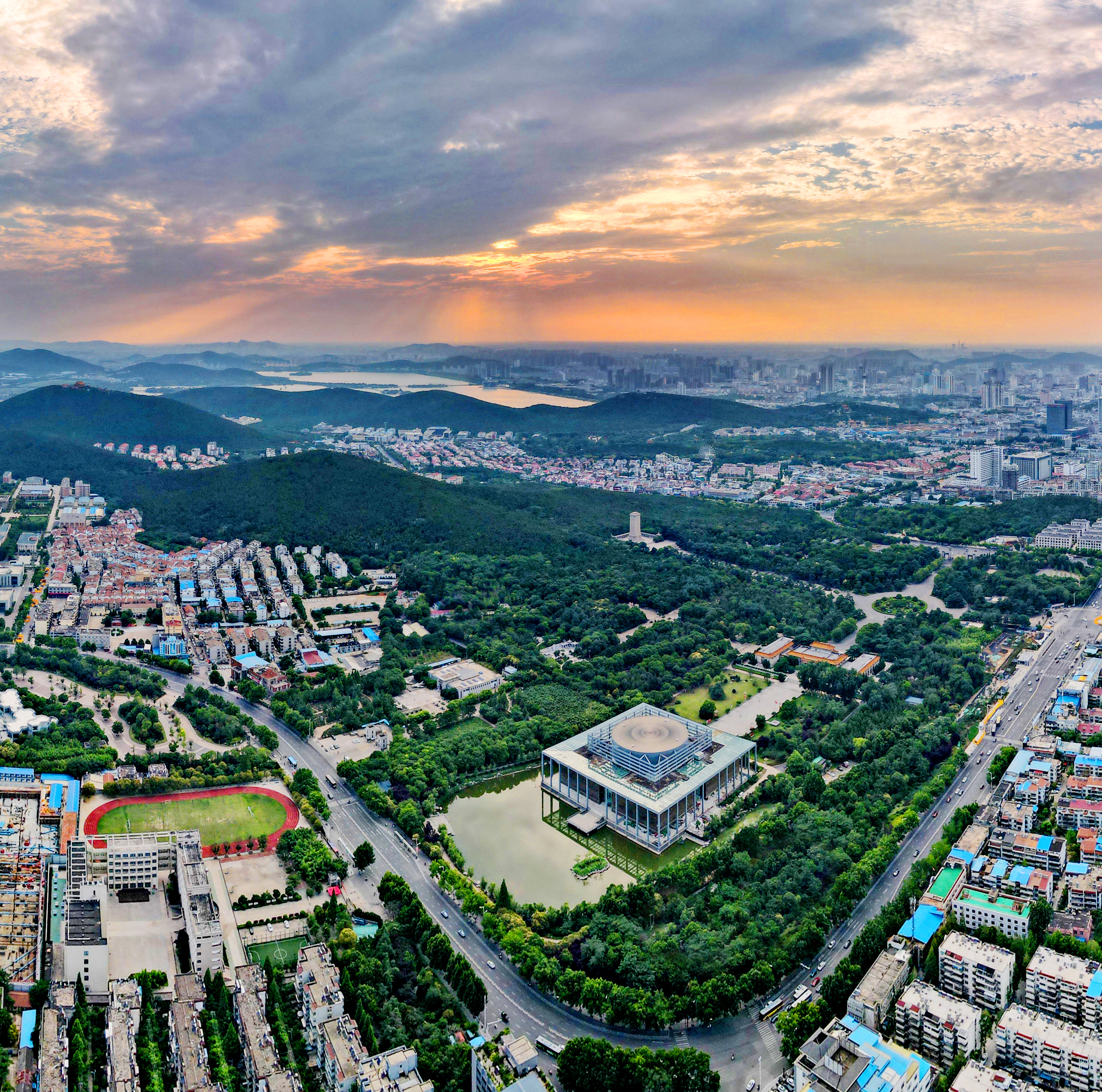 圖1:落日余暉下的淮海戰(zhàn)役烈士紀(jì)念塔。孫井賢 攝