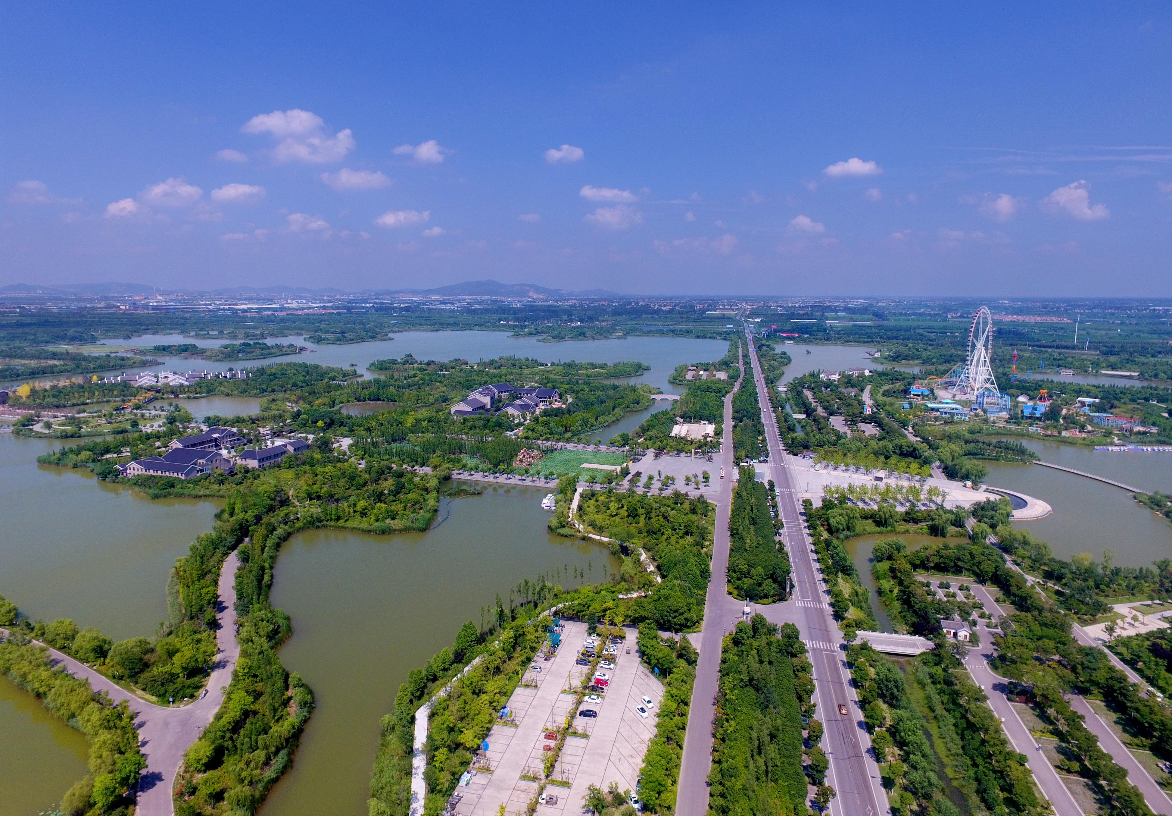 圖3:徐州走出一條資源枯竭型城市轉(zhuǎn)型的新路子。圖為采煤塌陷地修復(fù)而成的潘安湖濕地公園 孫井賢 攝