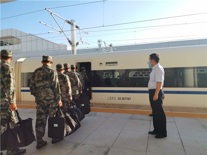 揚(yáng)帆起航踏征程,送兵入伍鑄軍魂。9月21日上午,在周口高鐵東站,隨著2021年下半年應(yīng)征入伍最后一批新兵起運(yùn),我市圓滿完成了年度新兵征集任務(wù)。周口軍分區(qū)司令員湯維政、副市長張?jiān)鞯鹊秸舅托小?/p>