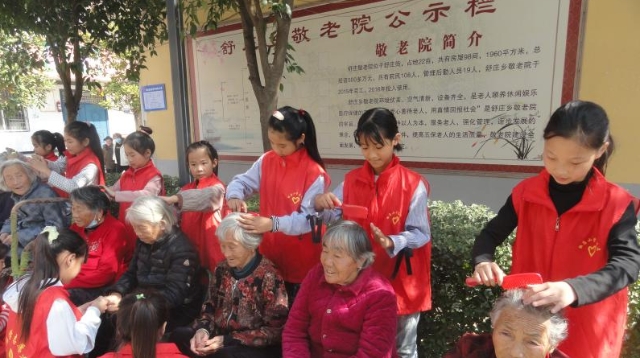 • ?10月13日,商水縣舒莊鄉(xiāng)杜店小學(xué)的愛(ài)心志愿者來(lái)到舒莊鄉(xiāng)敬老院為老人們梳頭。