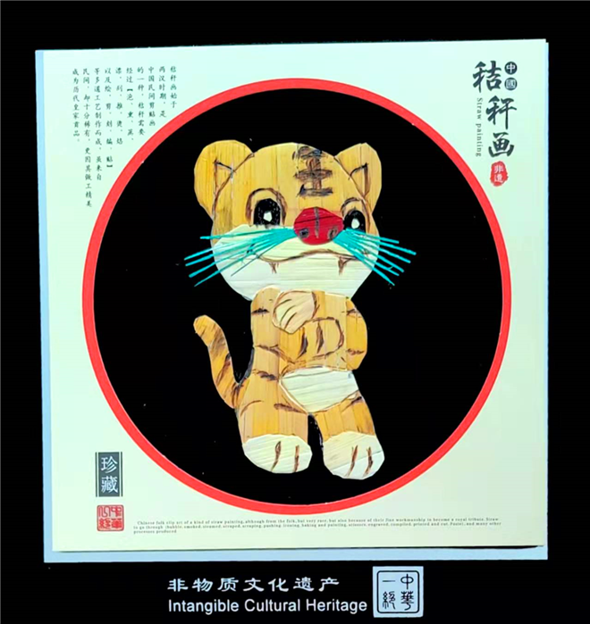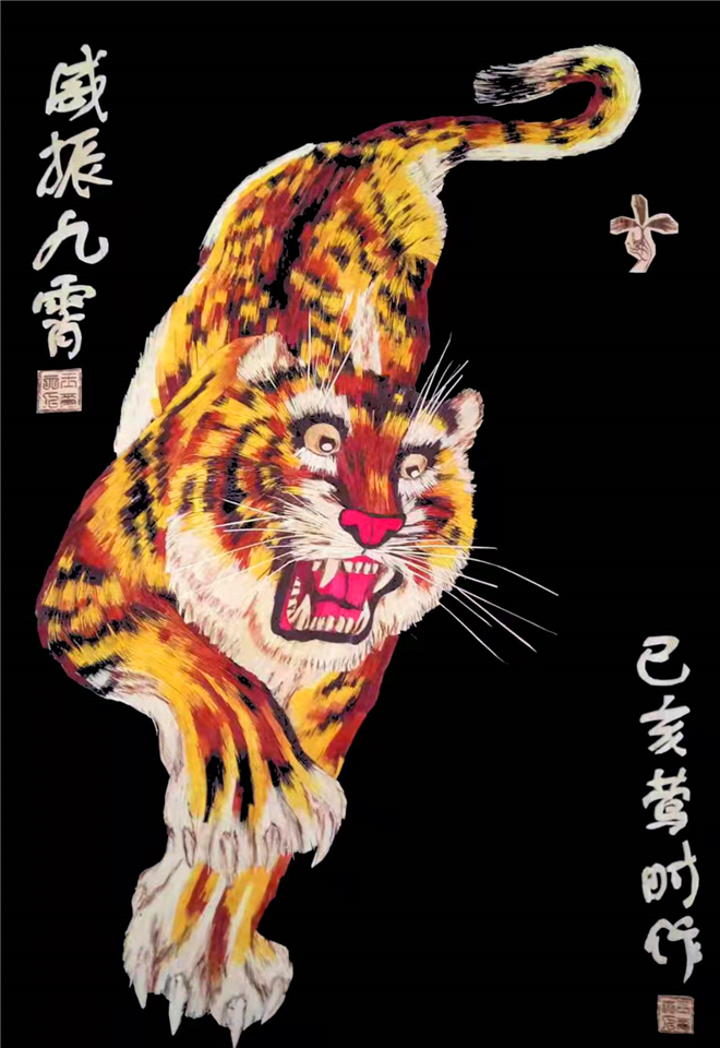 “虎在中國是極其有力量的動物?!?月25日,秸稈畫技藝代表性傳承人、中國民間文藝家協(xié)會國家級會員王春梅告訴記者,她耗時近半年創(chuàng)作的秸稈畫《威震九霄》已完成。記者看到,作品中的老虎長半米有余,威風凜凜、活靈活現(xiàn),用平面的方式展現(xiàn)了立體的效果?!?022年是虎年。在古代,老虎就以威風凜凜的形象被視為勇氣的象征,來表現(xiàn)軍人的勇敢和堅強。古時候關于將士大臣的美譽就有虎將、虎臣、虎士等。”王春梅說。
