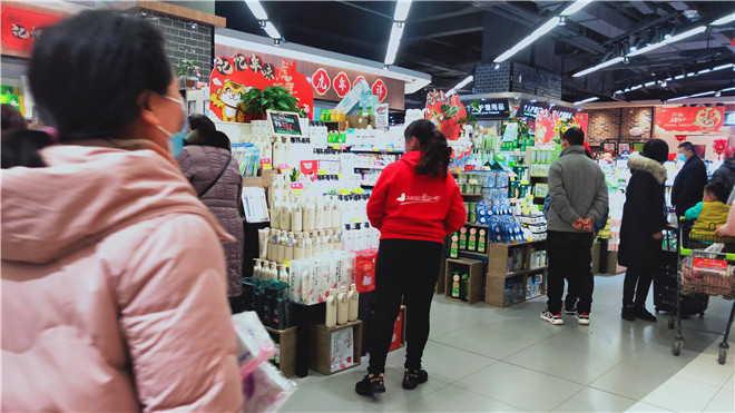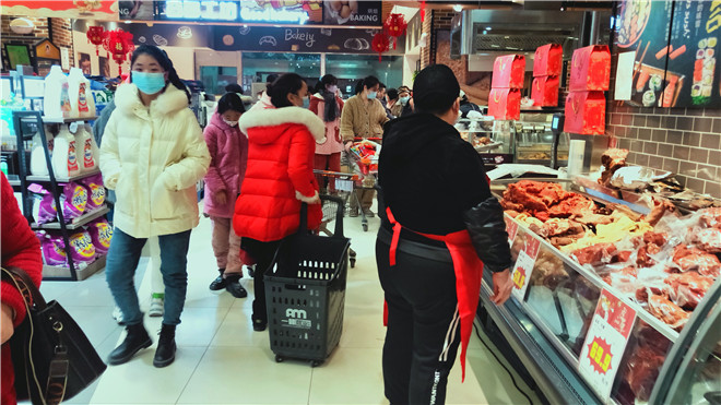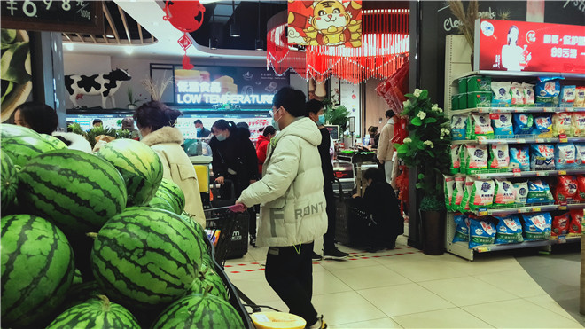春節(jié)將至,我市各大超市處處是濃濃的年味。1月26日,記者走進我市中心城區(qū)各大超市發(fā)現(xiàn),超市內熙熙攘攘,生鮮果蔬區(qū)域消費者尤多,絕大多數(shù)消費者自覺佩戴口罩。②11