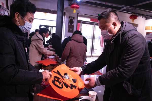 1月28日上午,市民間文藝家協(xié)會、市燈謎學(xué)專委會聯(lián)合華威民俗文化博物苑邀請霍云亭、寇成義、李國彬、靳玉峰、陳濤、游富華、何南、軒敬賢、李雯云等書法家,為市民寫春聯(lián)送祝福。窗外雪花飛舞,屋內(nèi)紅紙鋪展,老中青書法家揮毫潑墨,表達(dá)新年祝福。