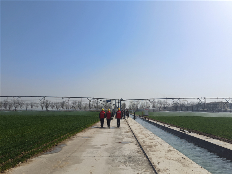 “這種大型電動(dòng)平移式噴灌機(jī)只需3天時(shí)間就能精準(zhǔn)澆灌700畝農(nóng)田,與傳統(tǒng)漫灌式澆水不同,它既節(jié)省了人力,還省水,能全方位提升農(nóng)田灌溉效率和品質(zhì)?!笨粗锏乩镩L勢喜人的小麥,說起澆灌的方便,河南省黃泛區(qū)實(shí)業(yè)集團(tuán)第一分公司副總經(jīng)理謝長領(lǐng)由衷地感慨道,從手提肩挑到刷卡遙控,再到如今的大型電動(dòng)平移式噴灌機(jī),這些年來每一次灌溉方式的轉(zhuǎn)變都離不開供電部門的支持?!霸诠╇姴块T的幫助下,農(nóng)場的機(jī)井通了電,有了充足的水,我們種地再也不慌了。”謝長領(lǐng)說。