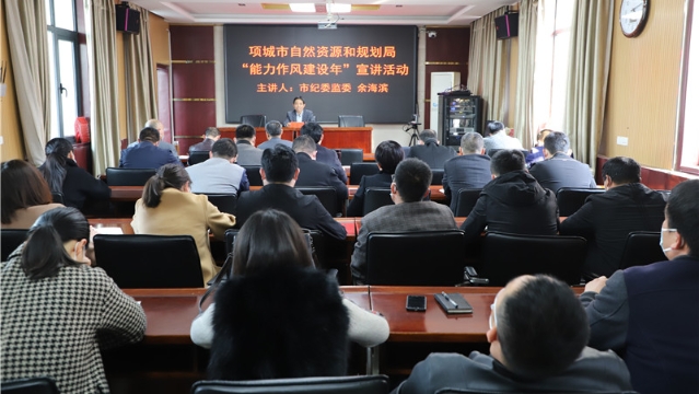 近日,項(xiàng)城市自然資源和規(guī)劃局開展“能力作風(fēng)建設(shè)年”主題宣講活動(dòng),特邀請(qǐng)項(xiàng)城市紀(jì)委監(jiān)委宣傳部宣講師余海濱前來(lái)授課。