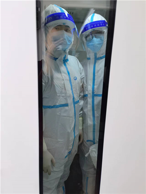 如果說有一座城叫眾志成城,那必定有一種力量叫檢驗(yàn)擔(dān)當(dāng)。在幾十平方米的實(shí)驗(yàn)室內(nèi),環(huán)境消毒、物資準(zhǔn)備、接收標(biāo)本、編號(hào)錄入、核酸提取、環(huán)境消殺、基因擴(kuò)增、結(jié)果研判、高壓消毒、信息上報(bào)、表格填寫、室內(nèi)質(zhì)控、室間質(zhì)評(píng)……每一個(gè)環(huán)節(jié)都需要嚴(yán)格規(guī)范操作,不放過任何一個(gè)細(xì)節(jié)、不能有一絲毫紕漏。在核酸檢測(cè)過程中,王健嚴(yán)格遵守生物安全制度,標(biāo)準(zhǔn)穿戴三級(jí)防護(hù)裝備,帽子、N95口罩、防護(hù)服、護(hù)目鏡、乳膠手套、隔離衣……一個(gè)也不能少。為以最快速度出具檢測(cè)結(jié)果,確保實(shí)驗(yàn)室安全,王健在低于標(biāo)準(zhǔn)大氣壓的負(fù)壓狀態(tài)下進(jìn)行工作。三級(jí)防護(hù)和大量檢測(cè)工作時(shí)常會(huì)使他出現(xiàn)汗流浹背、呼吸不暢、頭痛等缺氧癥狀,對(duì)體力是一個(gè)極大挑戰(zhàn)。但他總能克服這些困難,不辜負(fù)黨和人民的期望,在抗擊新冠肺炎疫情的戰(zhàn)場(chǎng)上勇?lián)姑?、沖鋒在前,為人民群眾筑起生命健康的第一道防線!