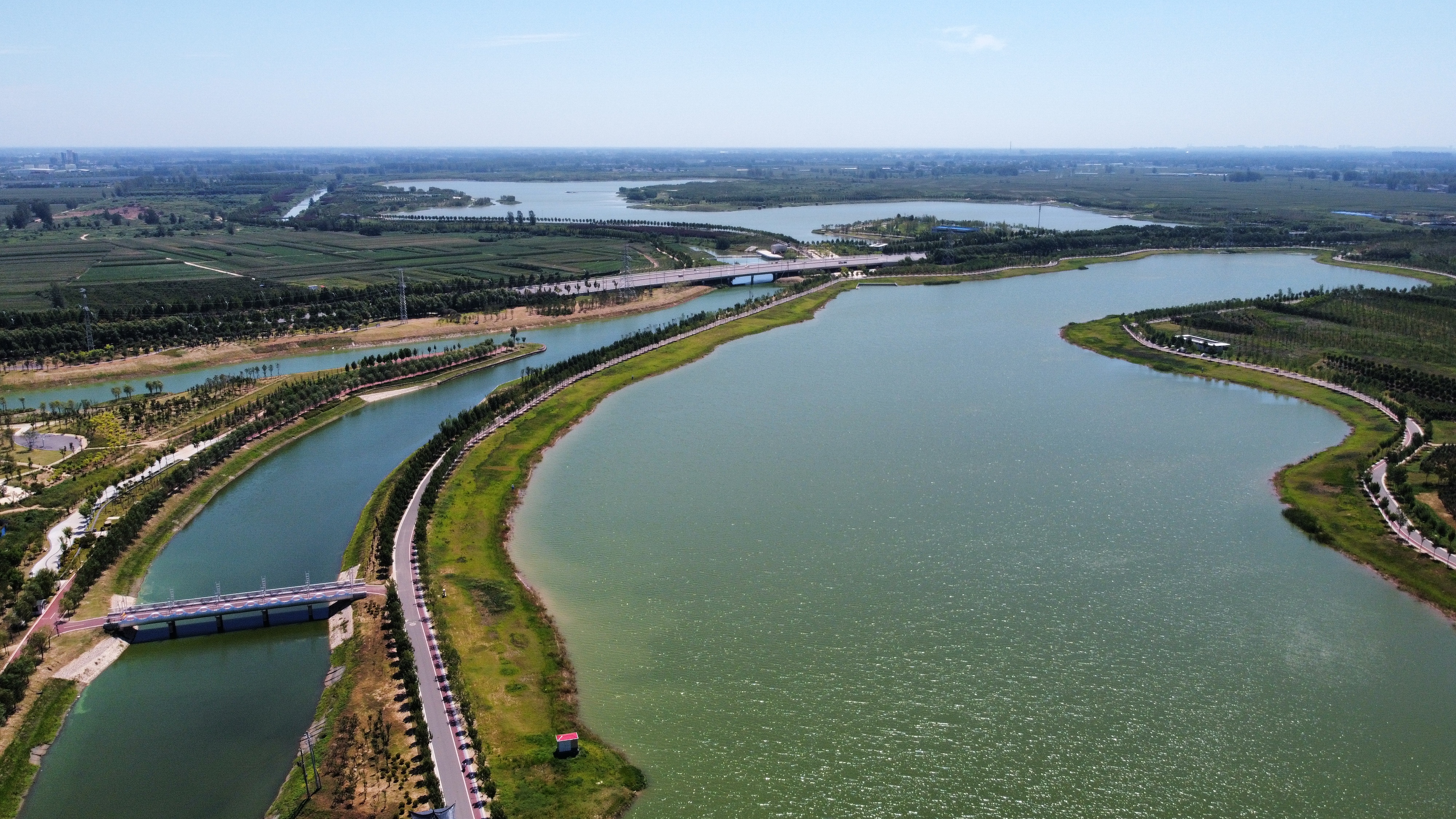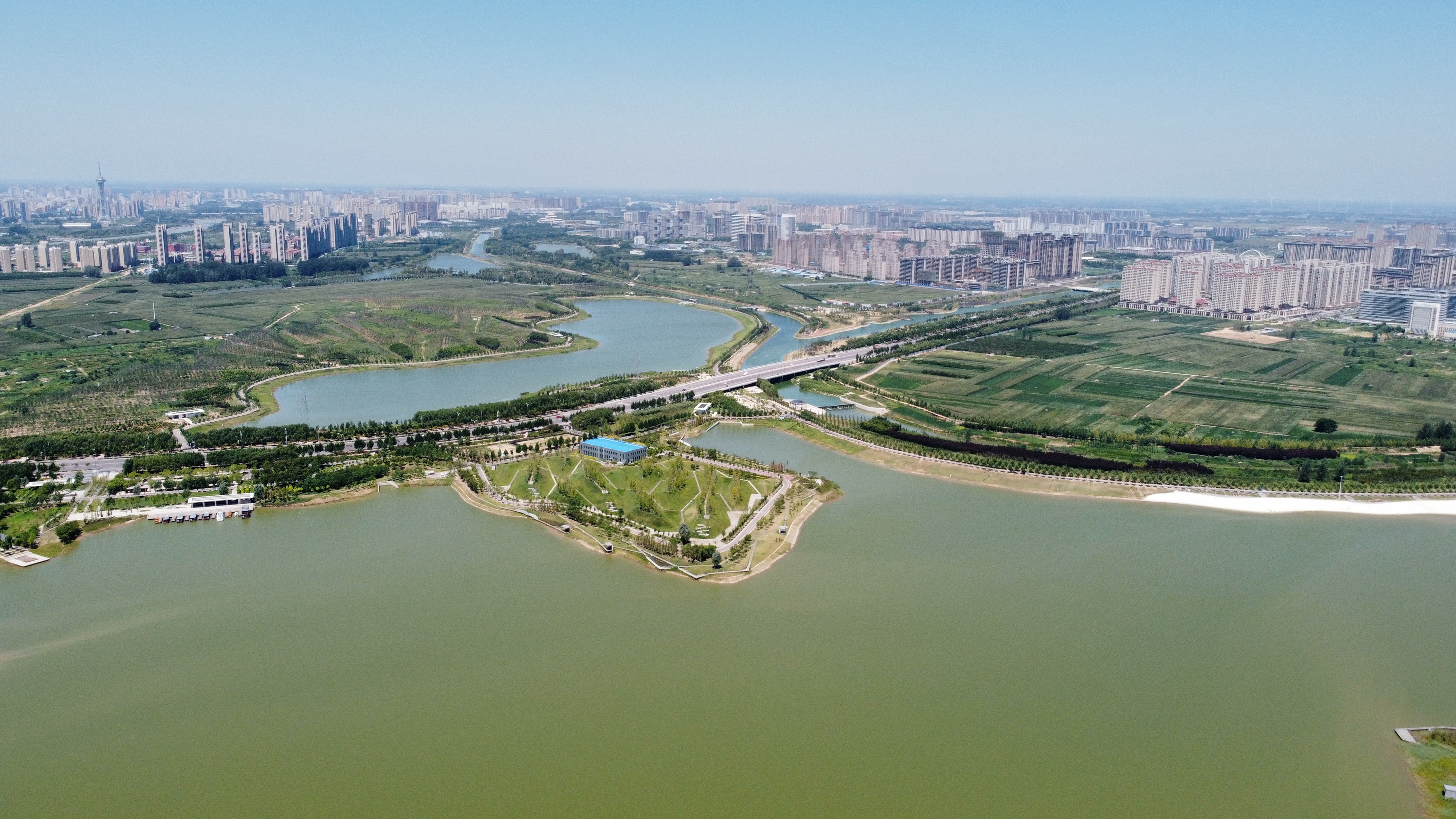 在周淮鐵路以東、大廣高速以西、流沙河以南、沙潁河以北,有一座集“灌溉調(diào)蓄、區(qū)域排澇、水質(zhì)保護(hù)、親水生態(tài)”于一體,融合“水安全、水環(huán)境、水文化、水經(jīng)濟(jì)”的綜合性基礎(chǔ)設(shè)施——永寧湖濕地公園。作為引黃調(diào)蓄項(xiàng)目,永寧湖濕地公園是中心城區(qū)十大民生工程之一,是周口市應(yīng)急備用水源地,主要功能為農(nóng)業(yè)灌溉調(diào)蓄,同時(shí)兼顧生態(tài)環(huán)境改善。永寧湖周邊同時(shí)規(guī)劃有一大批地標(biāo)性建筑,項(xiàng)目建成后,不僅能完善新區(qū)功能、提升城市形象,還能實(shí)現(xiàn)旅游產(chǎn)品與城市生活自然融會(huì)貫通,讓市民與游客共享濱水城市之美。①9 周口日報(bào)·周道客戶端記者 劉俊濤 攝