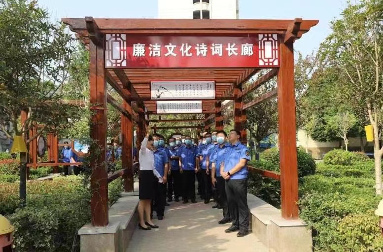 在建設大道與大慶路交叉口西南角的翰墨園內,黨員干部參觀了廉潔文化詩詞長廊,并就長廊中涉及的嚴以律己、廉潔奉公、為民情懷、家風家訓等典故及文化進行了詳細了解,接受了廉政文化熏陶;在中原路和七一路交叉口廉潔文化主題游園內,全體黨員干部重溫了入黨誓詞,對“三不腐”一體推進深刻內涵、社會主義核心價值觀、偉大建黨精神、古圣先賢廉政思想、革命先輩廉潔風范等內容進行了認真學習,領略了廉政思想,感受了廉潔基因。