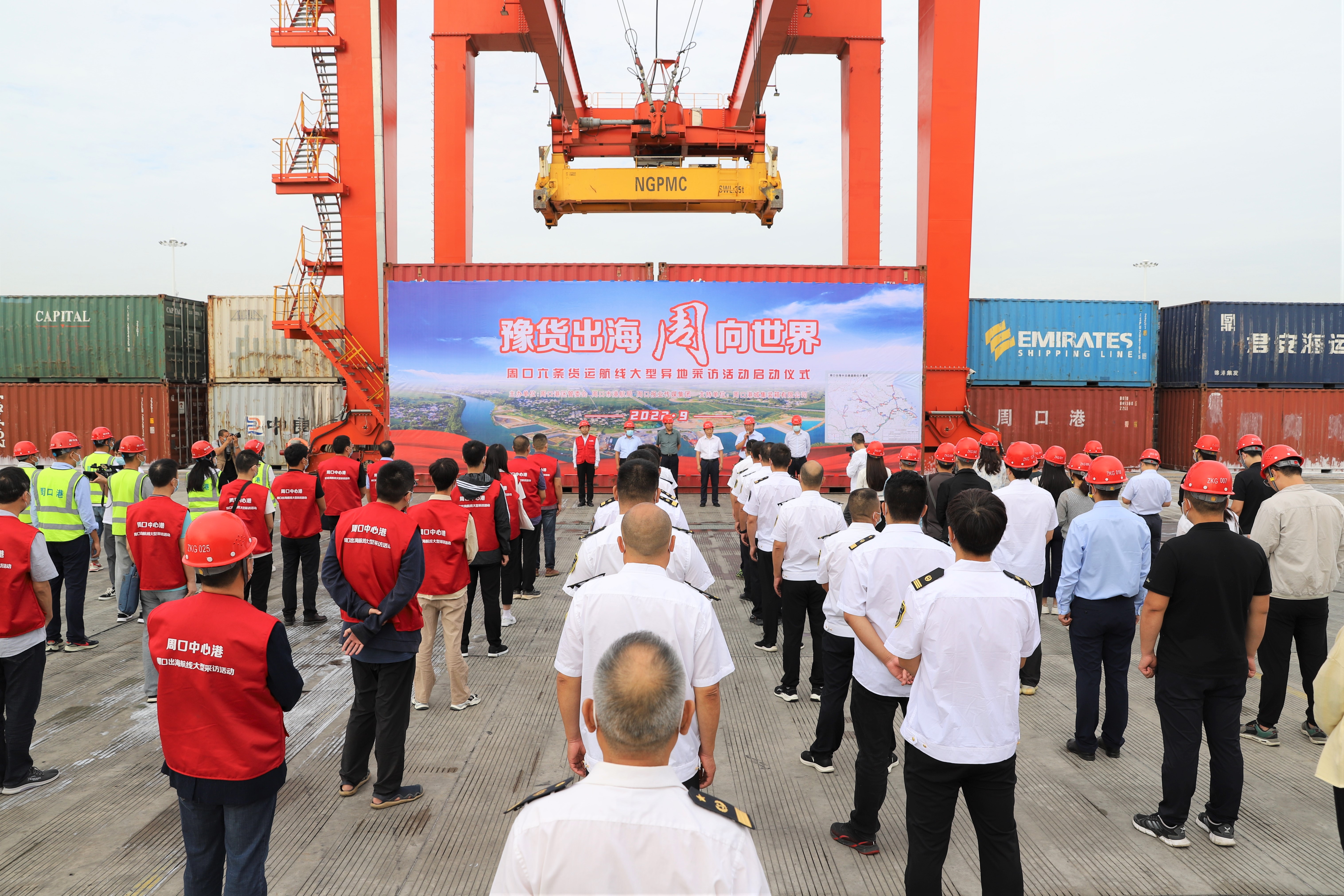 • 9月21日上午,由周口港區(qū)管委會(huì)、周口市港航局、周口報(bào)業(yè)傳媒集團(tuán)、周口港城集裝箱有限公司聯(lián)合組織開(kāi)展的豫貨出海 “周”向世界——周口六條貨運(yùn)集裝箱航線大型異地采訪活動(dòng)在周口中心港碼頭正式啟動(dòng)。