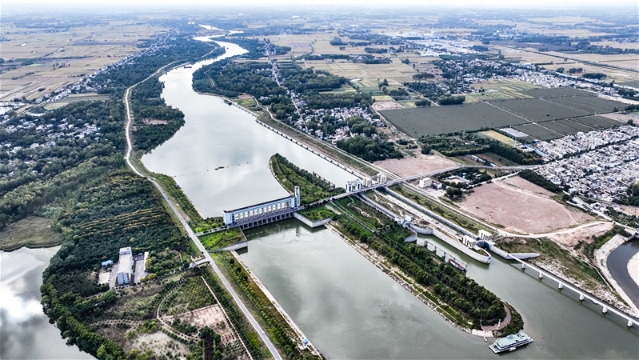 • 9月24日,豫貨出海、“周”向世界——周口航運(yùn)出海大型異地采訪活動(dòng)采訪組B組沿江淮運(yùn)河南下,一路上攬渡槽、臨派河、經(jīng)巢湖閘,再沿裕溪河左岸大堤下行,經(jīng)過(guò)一道河灣后,一座高大的建筑如臥龍一般橫跨裕溪河上。