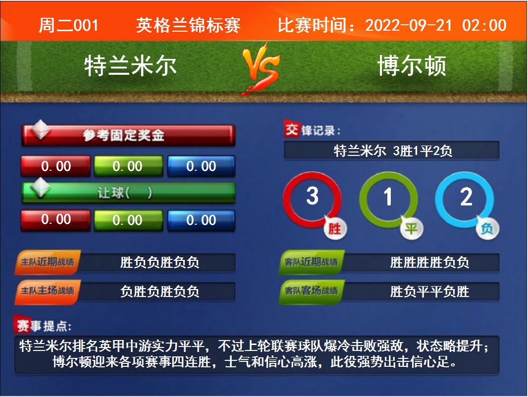 周二001  英格蘭錦標(biāo)賽 特蘭米爾VS博爾頓