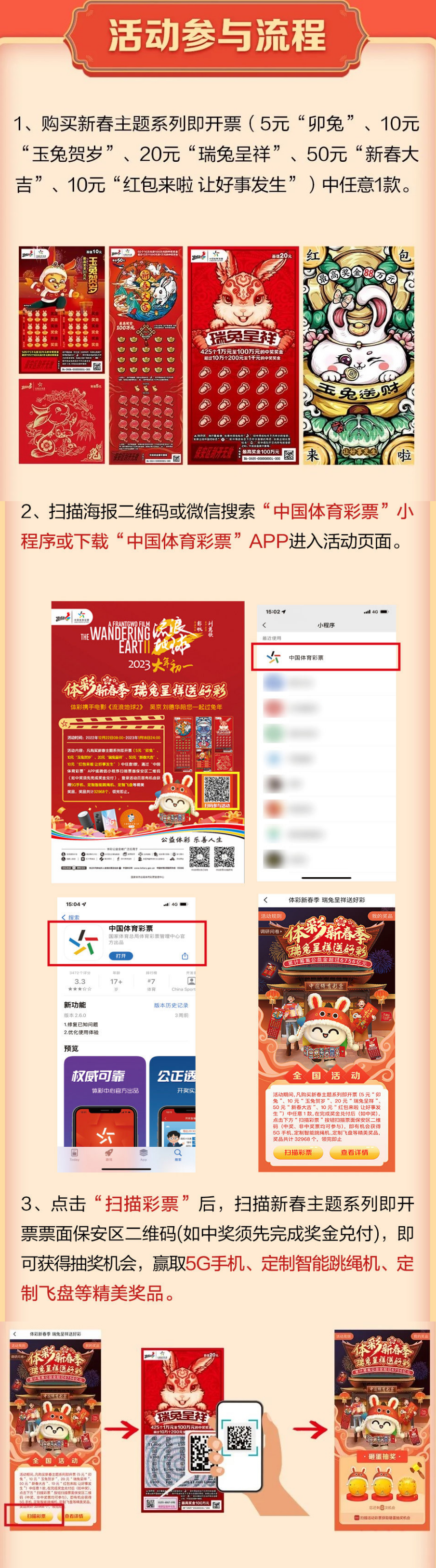 2.“體彩新春季”全國促銷活動細則詳見“中國體育彩票”微信小程序或“中國體育彩票”APP活動頁面,或登錄中國體彩網(wǎng)查詢相關信息。