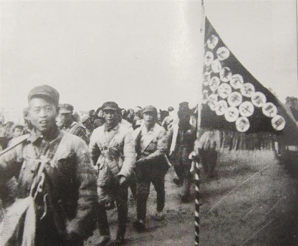 十八軍部隊(duì)揮師南下,受到沿途人民群眾的熱烈歡迎。圖為安徽阜陽(yáng)人民向部隊(duì)贈(zèng)送的錦旗。